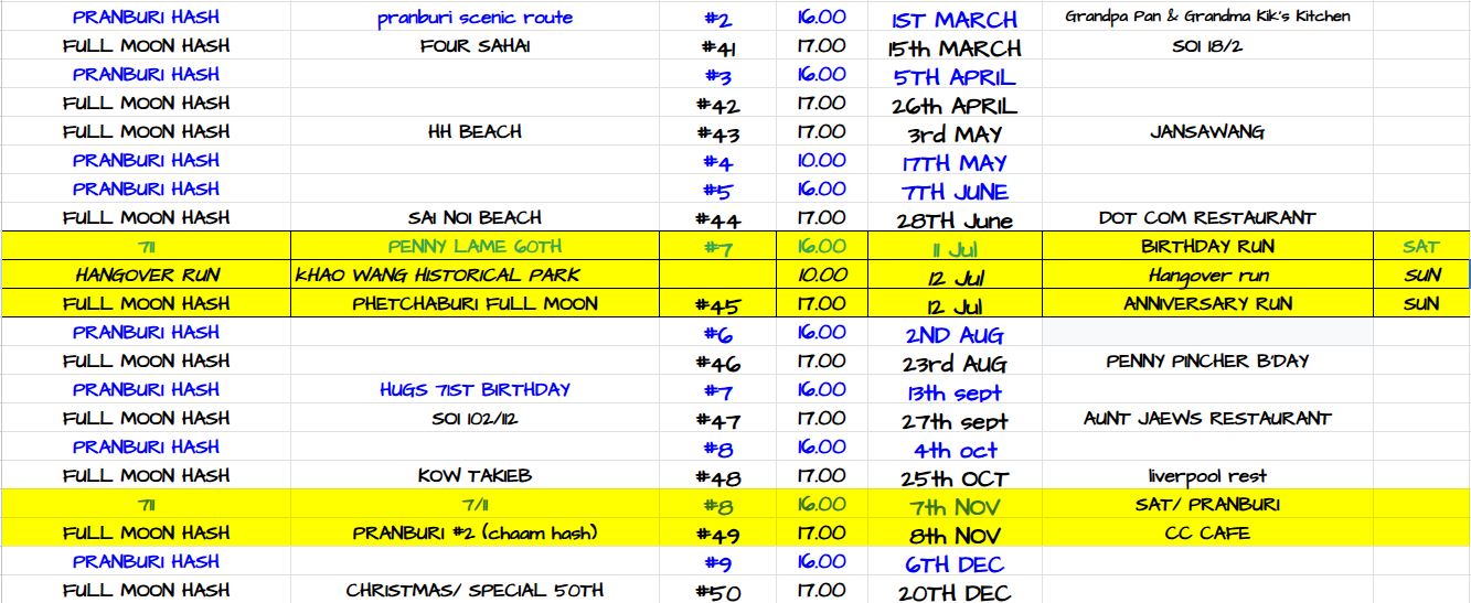Other Thailand hash chapters – links and info for hashes around Thailand.